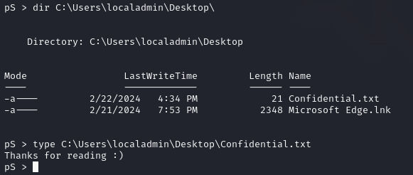 Issuing additional commands to confirm I have administrator privileges and the reverse shell works: