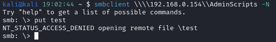 Then we can authenticate and attempt to place a reverse shell script Invoke-PowerShellTcp.ps1