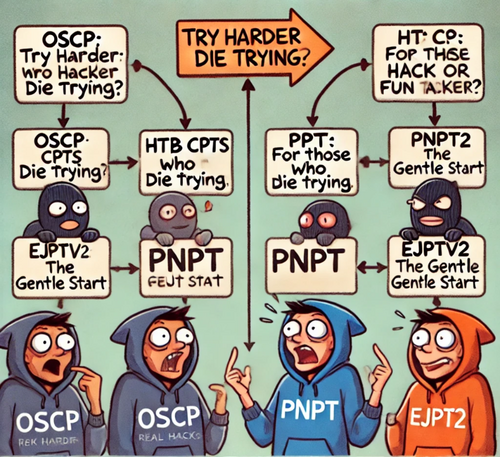 So, there’s hundreds of different certifications you COULD take as an ‘intro to pentesting’. Primarily discussing the most popular, reputable, and practical ones here. The main ones are OSCP, PNPT (Practical Network Penetration Tester) and CPTS.